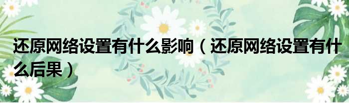 关于还原网络设置有什么影响,还原网络设置有什么后果的介绍到此结束,希望对大家有所帮助。
