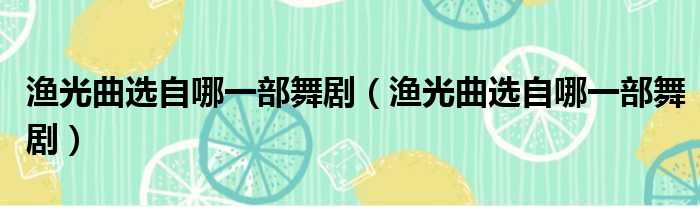 关于渔光曲选自哪一部舞剧,渔光曲选自哪一部舞剧的介绍到此结束,希望对大家有所帮助。