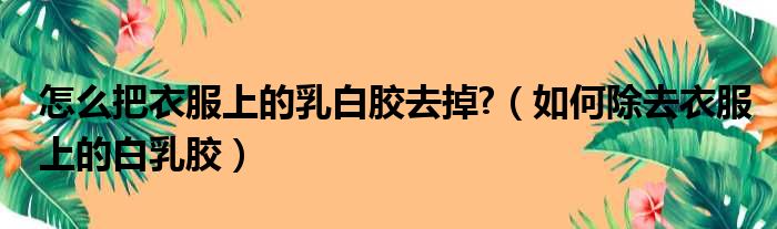 关于怎么把衣服上的乳白胶去掉?,如何除去衣服上的白乳胶的介绍到此结束,希望对大家有所帮助。