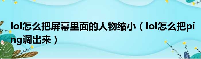 关于lol怎么把屏幕里面的人物缩小,lol怎么把ping调出来的介绍到此结束,希望对大家有所帮助。