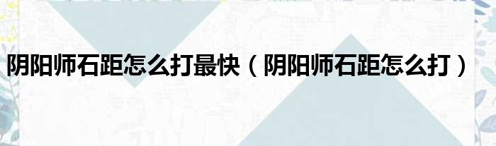 关于阴阳师石距怎么打最快,阴阳师石距怎么打的介绍到此结束,希望对大家有所帮助。