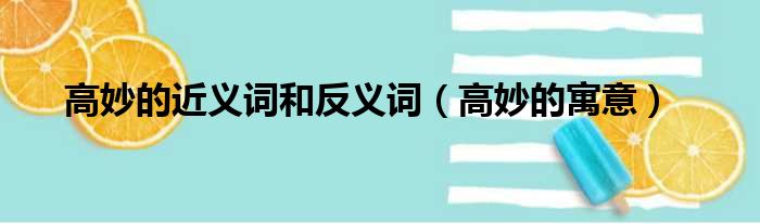 关于高妙的近义词和反义词,高妙的寓意的介绍到此结束,希望对大家有所帮助。