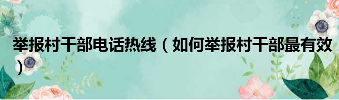 关于举报村干部电话热线,如何举报村干部最有效的介绍到此结束,希望对大家有所帮助。