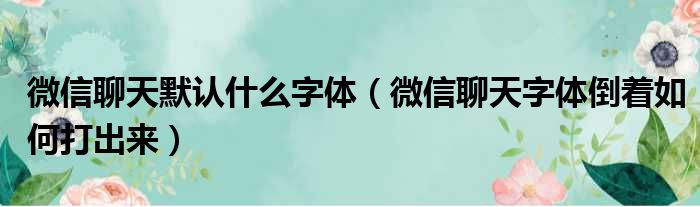 关于微信聊天默认什么字体,微信聊天字体倒着如何打出来的介绍到此结束,希望对大家有所帮助。