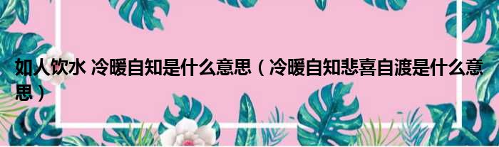 关于如人饮水 冷暖自知是什么意思,冷暖自知悲喜自渡是什么意思的介绍到此结束,希望对大家有所帮助。