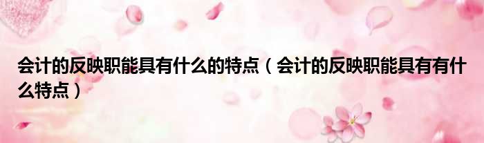 大家好,小纵来为大家解答以上问题。会计的反映职能具有什么的特点,会计的反映职能具有有什么特点这个很多人还不清楚,现在一起跟着小编来瞧瞧吧!