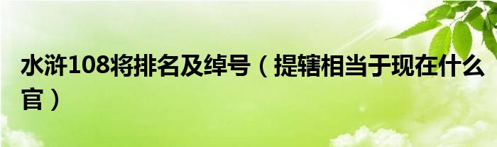 大家好,小纵来为大家解答以上问题。水浒108将排名及绰号,提辖相当于现在什么官这个很多人还不清楚,现在一起跟着小编来瞧瞧吧!