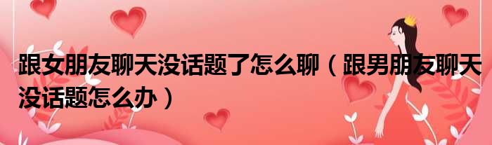 大家好,小纵来为大家解答以上问题。跟女朋友聊天没话题了怎么聊,跟男朋友聊天没话题怎么办这个很多人还不清楚,现在一起跟着小编来瞧瞧吧!