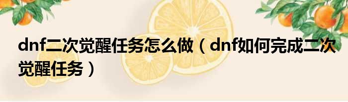 关于dnf二次觉醒任务怎么做,dnf如何完成二次觉醒任务的介绍到此结束,希望对大家有所帮助。