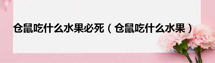 大家好,小纵来为大家解答以上问题。仓鼠吃什么水果必死,仓鼠吃什么水果这个很多人还不清楚,现在一起跟着小编来瞧瞧吧!