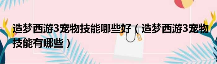 大家好,小纵来为大家解答以上问题。造梦西游3宠物技能哪些好,造梦西游3宠物技能有哪些这个很多人还不清楚,现在一起跟着小编来瞧瞧吧!