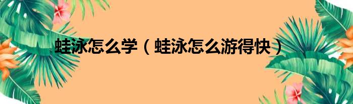 关于蛙泳怎么学,蛙泳怎么游得快的介绍到此结束,希望对大家有所帮助。