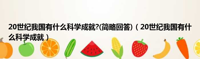 关于20世纪我国有什么科学成就?(简略回答),20世纪我国有什么科学成就的介绍到此结束,希望对大家有所帮助。