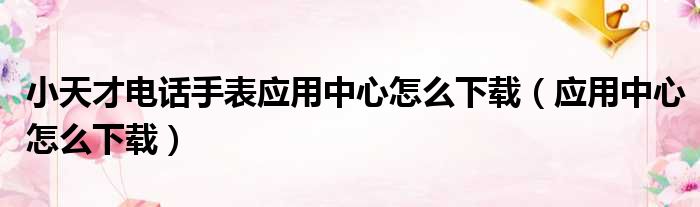 关于小天才电话手表应用中心怎么下载,应用中心怎么下载的介绍到此结束,希望对大家有所帮助。