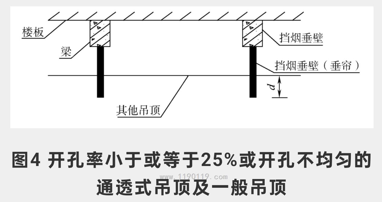 请问封闭吊顶,耐火极限符合要求,挡烟垂壁必须按照图四在梁下还是可以在吊顶下?