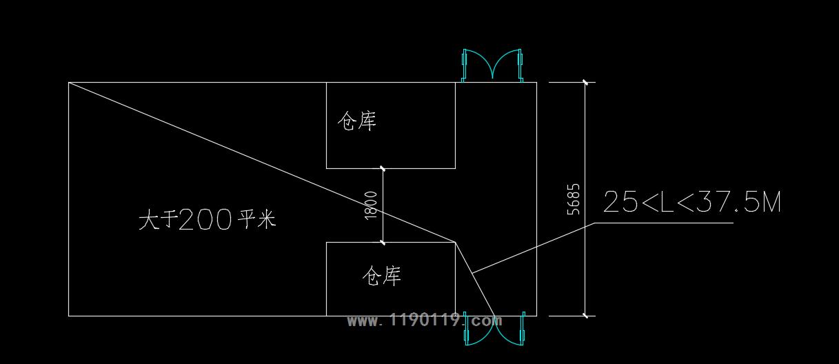 这个是一个零售的营业厅,这样疏散是否可以,还是大于200平米区域只有一个疏散方向不行,仓库中间的开敞区要多宽才可视为两个疏散方向,1.4+5+1.4=7.8m吗?
