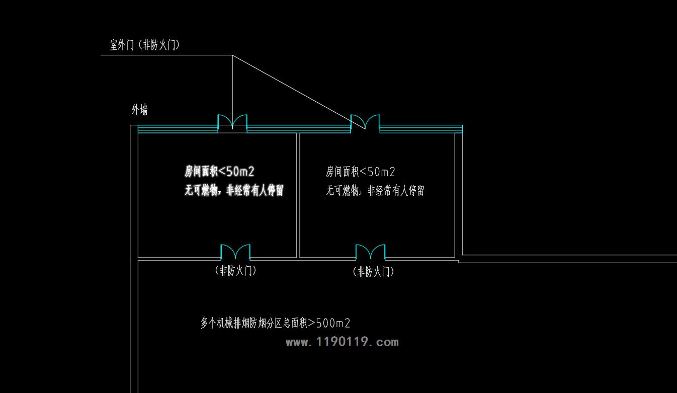如图:补风口设置在靠近外墙小房间内,外门或外窗进行补风是否可以?多个二装项目有的图审老师允许,有的说要直接补到排烟空间或是公共区内,有无明确规范来约束补风口区域?