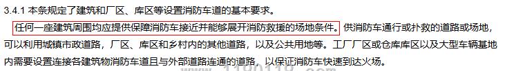 任何建筑都需要设置至少1条消防车道。占地面积小于3000㎡的多层公共建筑也必须要的。