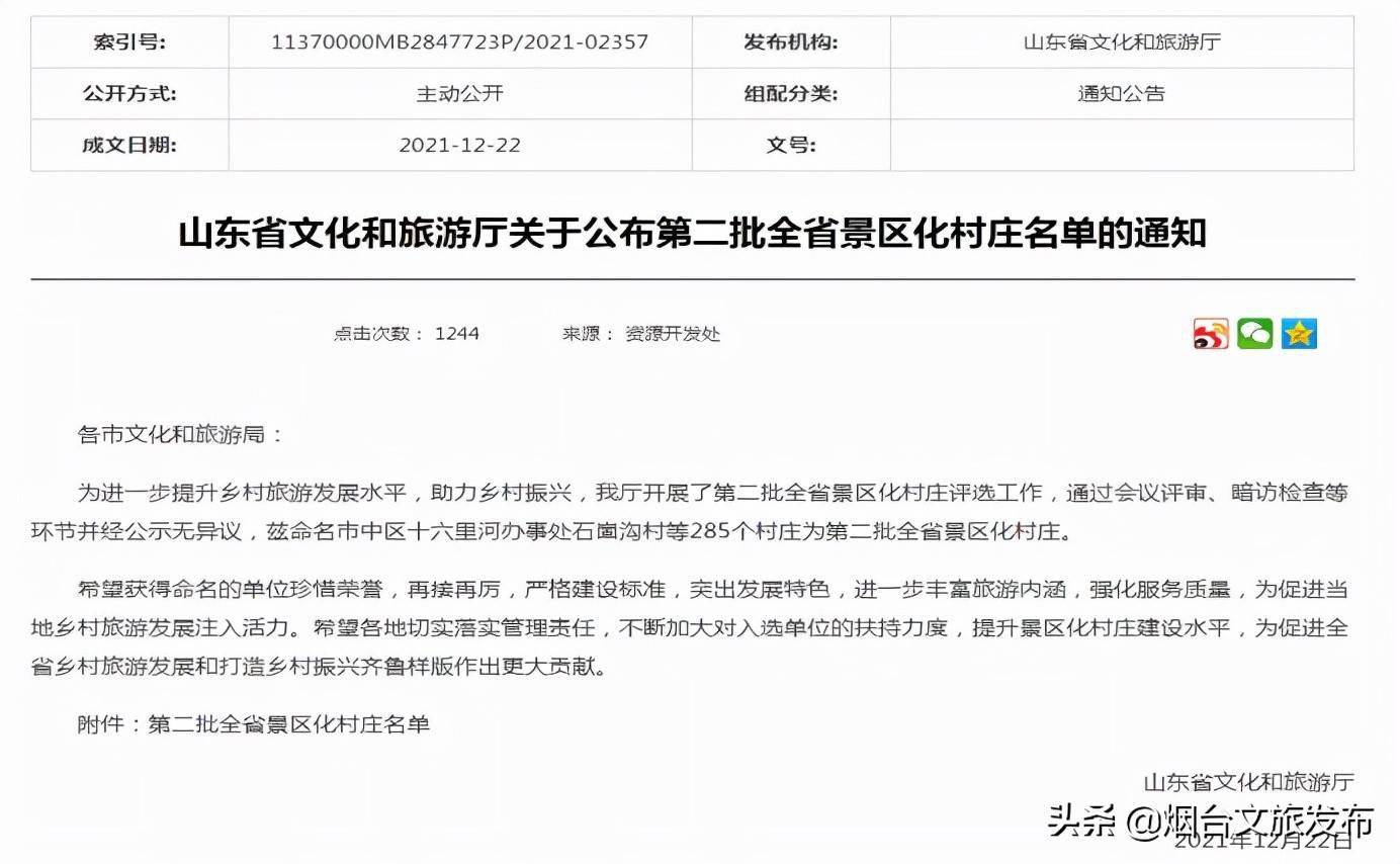 近日山东省文化和旅游厅公布