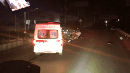 金三角加油站附近一辆轿车发生车祸