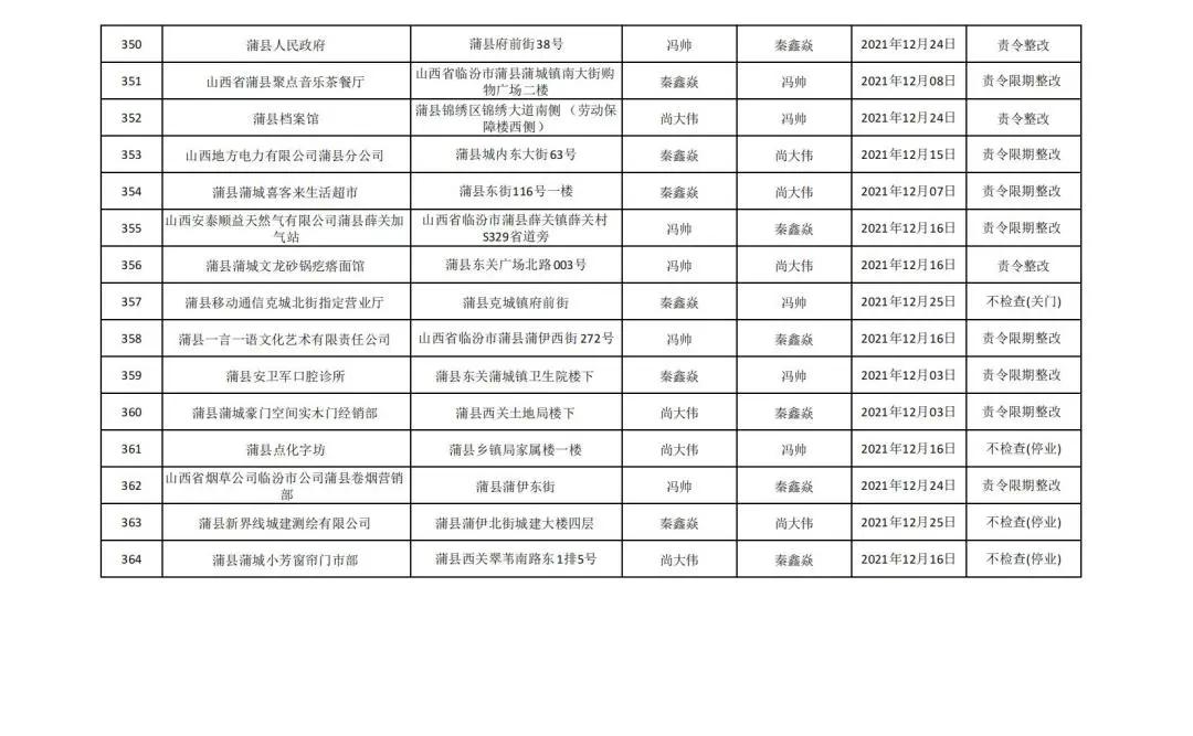 原标题:2021年12月份“双随机、一公开”消防监督抽查结果公示