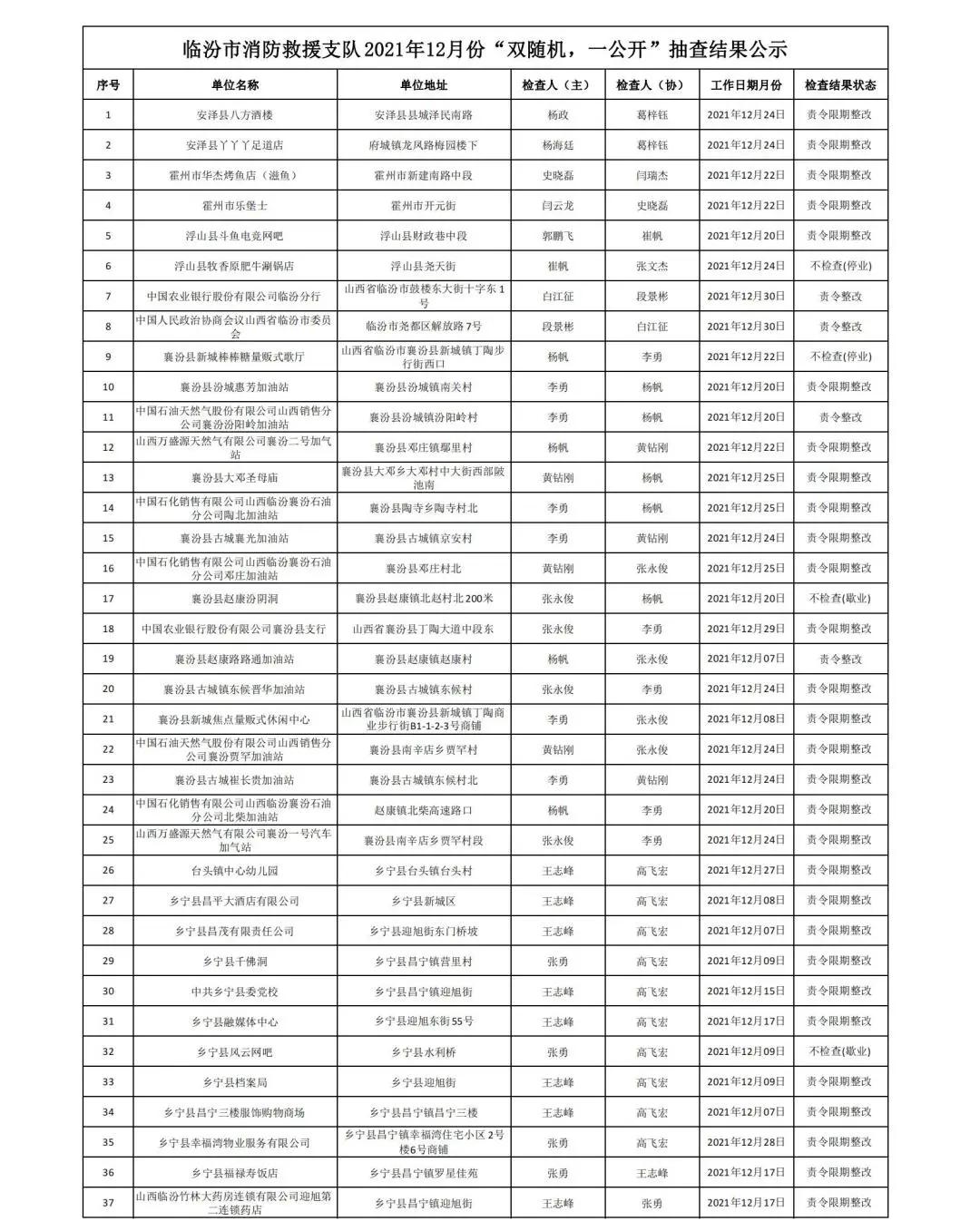 根据相关工作要求,现将2021年12月份“双随机、一公开”消防监督抽查结果予以公示。