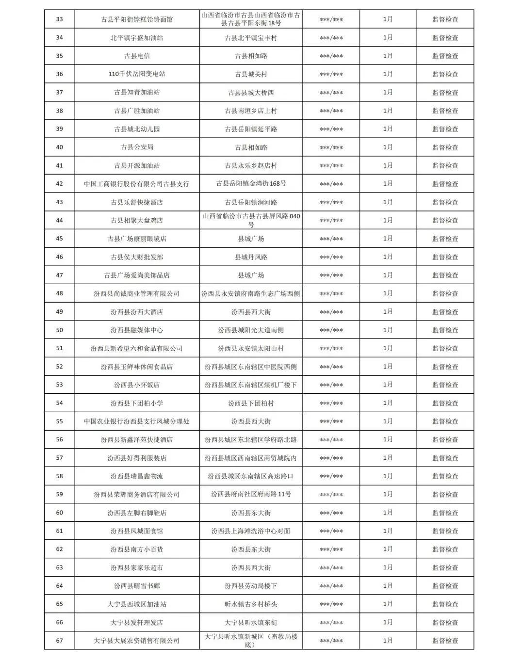 根据应急管理部消防救援局《关于全面推行“双随机、一公开”消防监管工作的通知》(应急消〔2019〕241号)及山西省消防救援总队《全面推行“双随机、一公开”消防监管工作实施方案》(晋消办[2019]121号)的统一部署要求,临汾市消防救援支队从2019年10月1日起全面推行“双随机、一公开”消防监管工作模式。