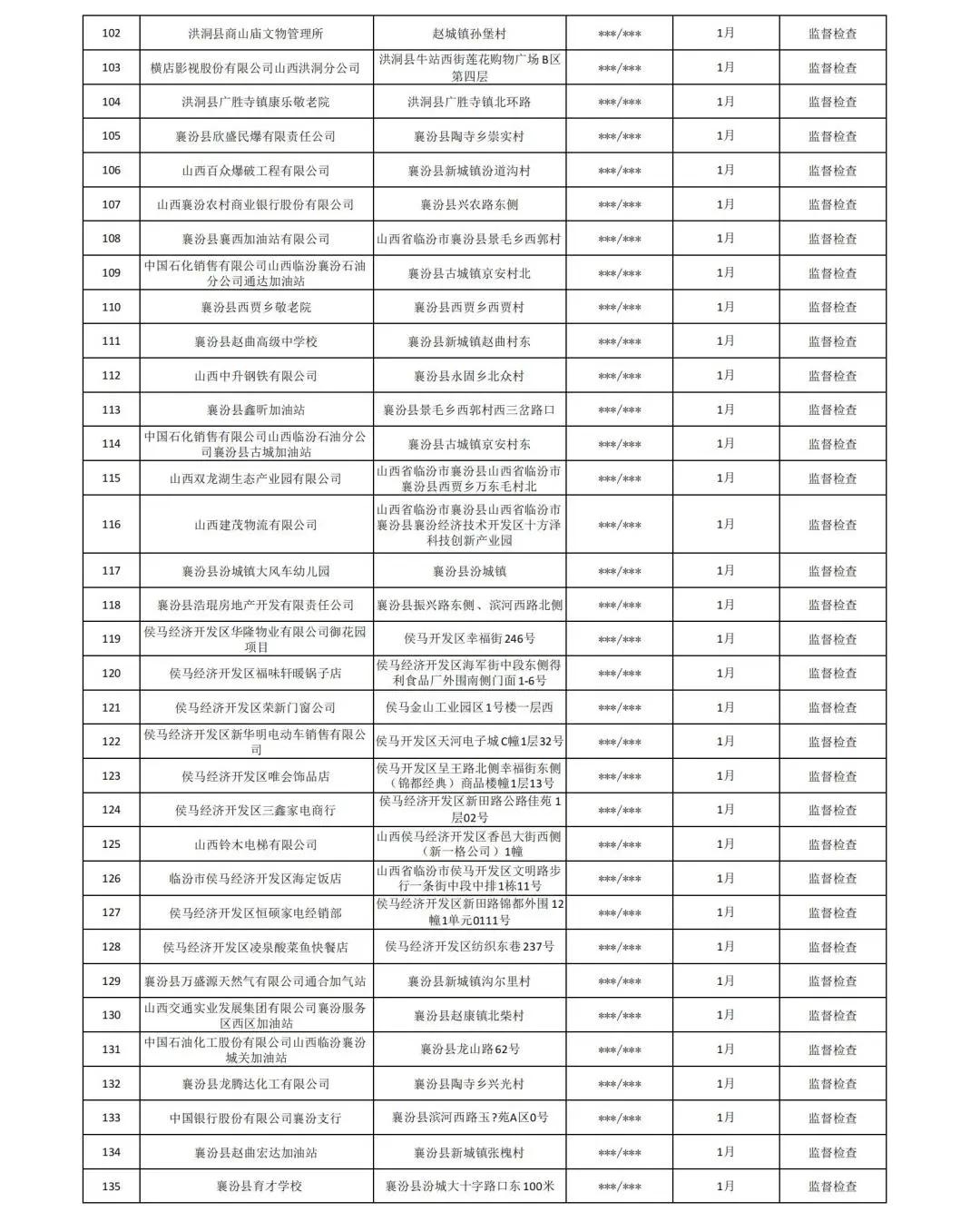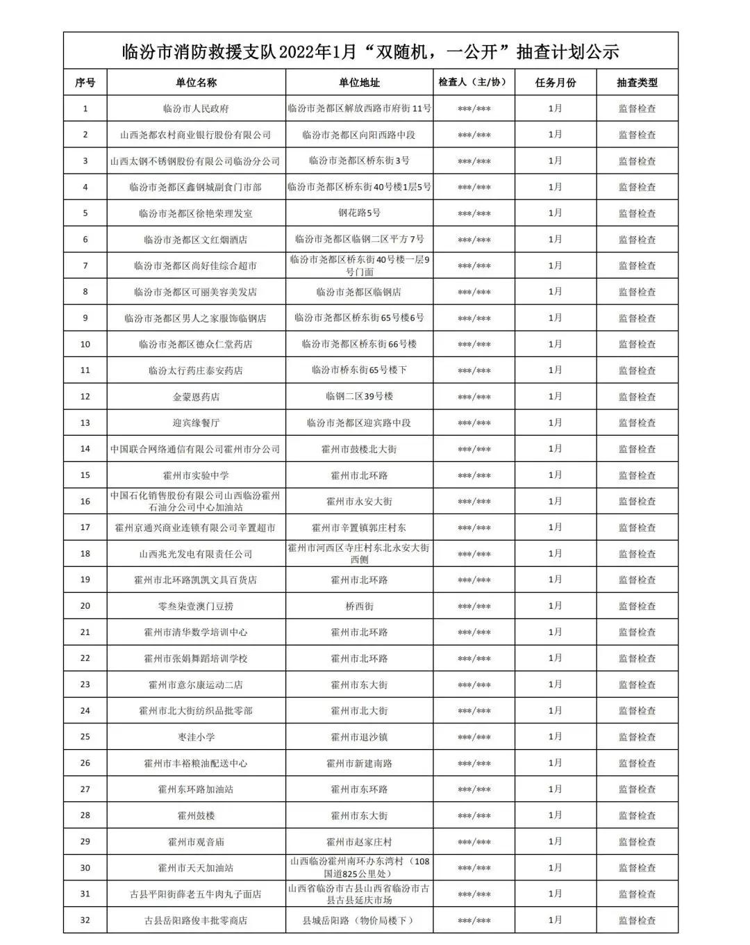 原标题:2022年1月份“双随机、一公开”消防监督抽查计划公示