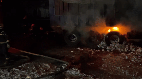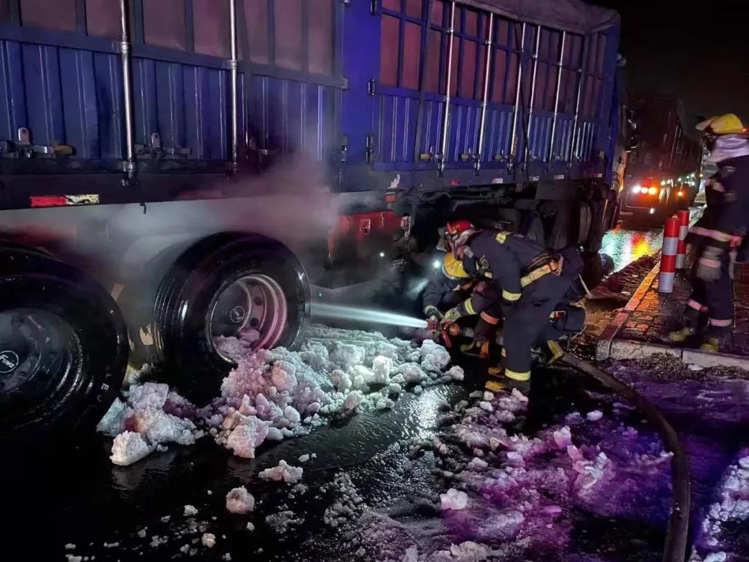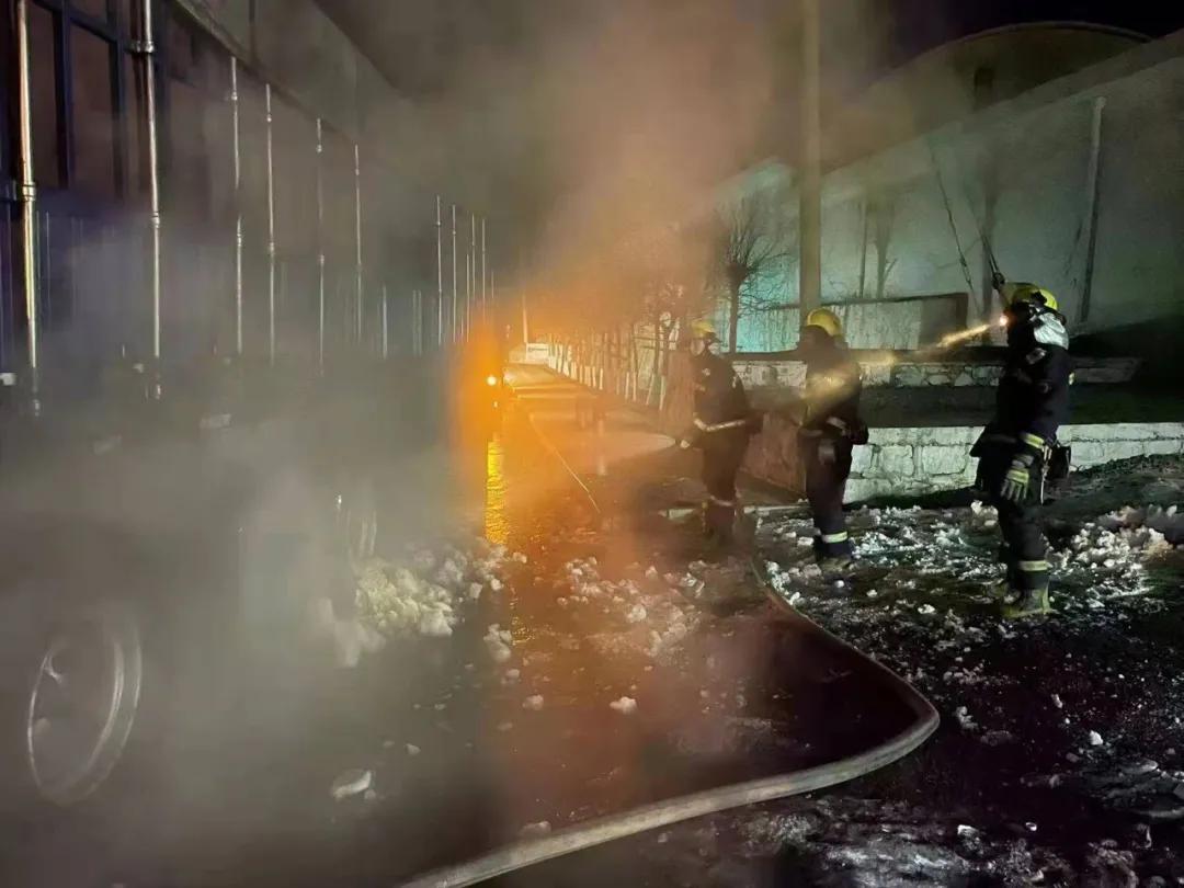 2022年1月9日04时42分,接到指挥中心派警:盂县南娄镇西小坪村一辆半挂车轮胎起火,接到派警后,消防站立即出动2车12人前往处置。