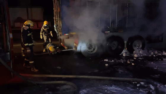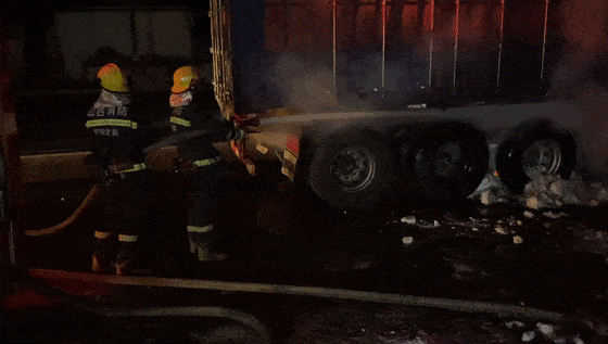 到达现场后,火势正处于猛烈燃烧阶段,指挥员立即下达作战指令,命令警戒组对现场进行警戒,防止造成不必要的车辆、人员伤害,同时命令战斗组单干线出一支水枪,对着火轮胎进行灭火。在经过15分钟的灭火,明火成功熄灭。但由于车辆载货为煤,为防止复燃,指挥员命令继续对车辆实施降温处理。经过20多分钟的紧张工作,确认无复燃可能后,收整器材返回消防站。