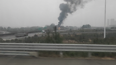 滚滚黑烟窜至20多米高