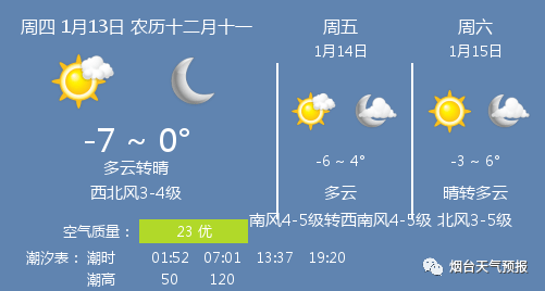 1月13日烟台天气:
