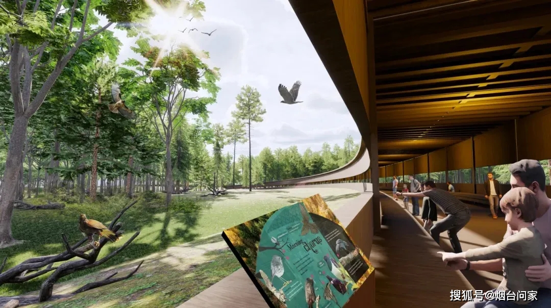 为增强互动性与教育功能,规划建设观鸟长廊、观鸟亭等隐蔽性景观设施,为市民创造季节性观鸟场所。