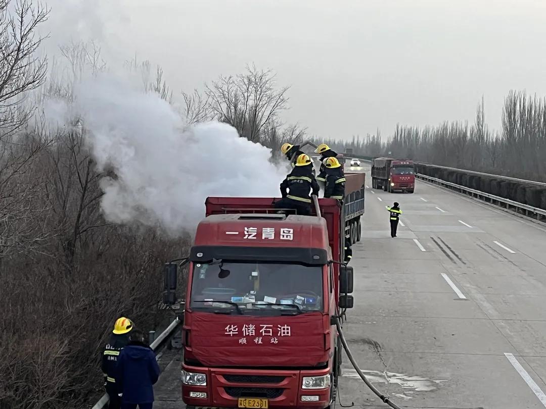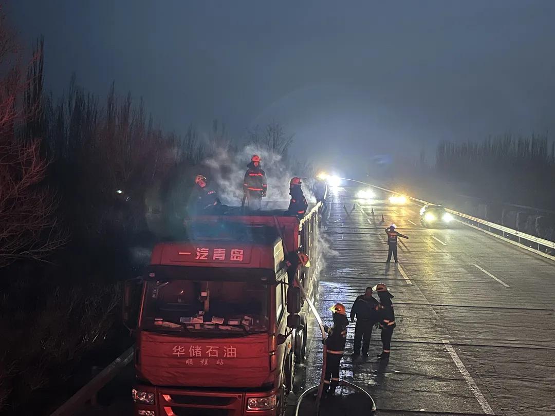 位于朔州市应县往大同高速方向一辆拉煤车起火