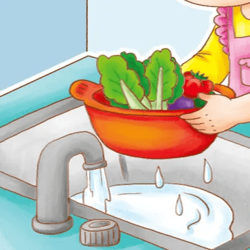 果蔬的正确“洗澡方式”。 放在流动水下用手搓洗,或使用果蔬洗涤剂进行清洗。有些水果可以用开水烫一下后剥皮吃,蔬菜不要凉拌生食。