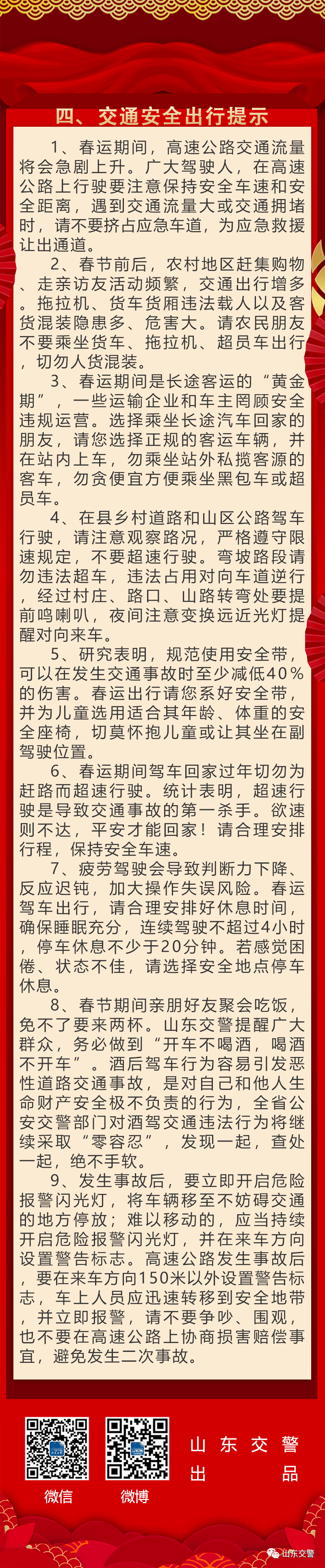 春节期间高速免费通行!山东交警发布易堵路段及出行提示