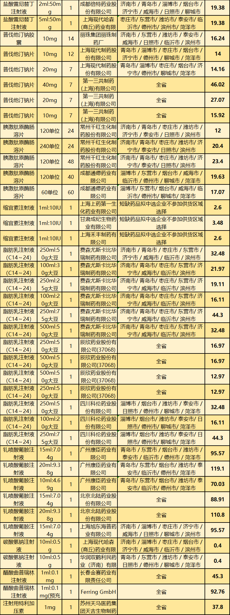 山东省第二批(鲁晋联盟)药品