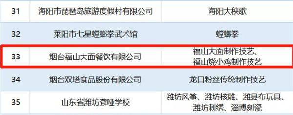 为贯彻落实中共中央、国务院《关于进一步加强非物质文化遗产保护工作的意见》,提高全省非遗系统性保护能力和水平,2021年,山东省文化和旅游厅部署开展了全省非物质文化遗产传承教育实践基地评选工作。由烟台市福山区文化馆(非遗保护中心)筛选,福山区文化和旅游局审核、推荐的烟台福山大面餐饮有限公司获评省级非物质文化遗产传承教育实践基地。