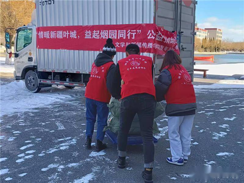 1月13日上午,烟台大学文学与新闻传播学院将募捐到的爱心衣物打包整理,开始装车发往新疆叶城。据悉,自2020年11月8日起,该学院发起“情暖新疆叶城,益起烟园同行”的爱心捐助活动,已连续举行两年,收到全校捐赠爱心衣物2000余件,爱心图书90余本,爱心资金2500余元。2022年1月初,在新疆叶城县团委和烟台大学青年志愿者协会的大力支持下,学院与新疆叶城志愿者协会充分沟通,围绕“文化润疆”工程展开多项志愿服务活动,为建设好各民族共有精神家园贡献烟大力量。