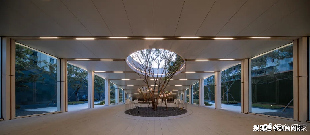 进入社区,入眼便是一个富有艺术性的场景。自然光线透过建筑倾注于树木,将空间与光线、自然融合为一个整体。