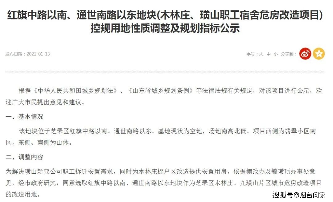 1月13日,烟台自然资源和规划局发布:
