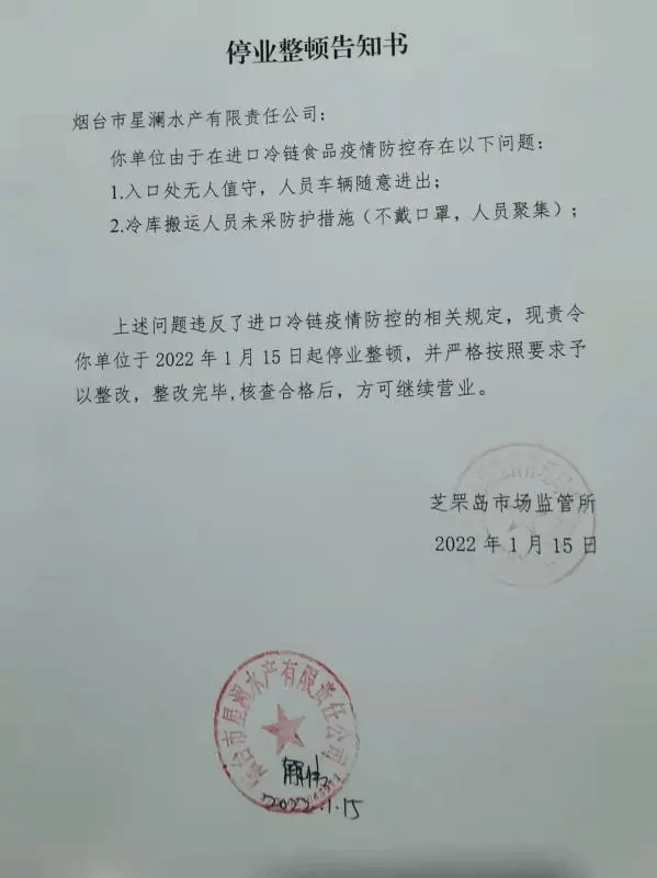 疫情形势国际国内仍然严峻,目前经日常督导检查,烟台市芝罘区仍有从事进口冷链食品经营单位不能落实疫情防控主体责任,为警示其他经营主体,现予以公开曝光!