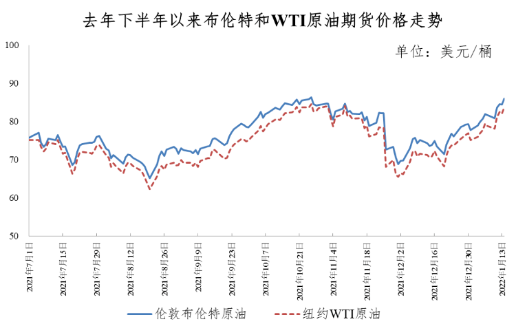 哈萨克斯坦发生动乱、俄乌对峙局势加剧、利比亚油田及港口暂停生产,市场对原油供应产生忧虑。