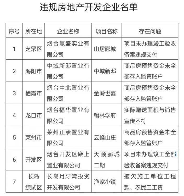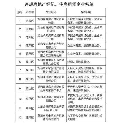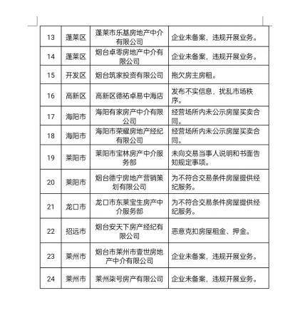 近日,烟台住建局联合10个市直部门、单位发布《烟台市持续整治规范房地产市场秩序三年行动方案》,正式启动为期3年的全市房地产市场秩序规范整治行动,重点对房地产开发、买卖、租赁、物业等四个方面展开全方位整治,目前,已完成第一阶段违法违规行为自查,并对47家出现违规行为的相关企业进行通报。