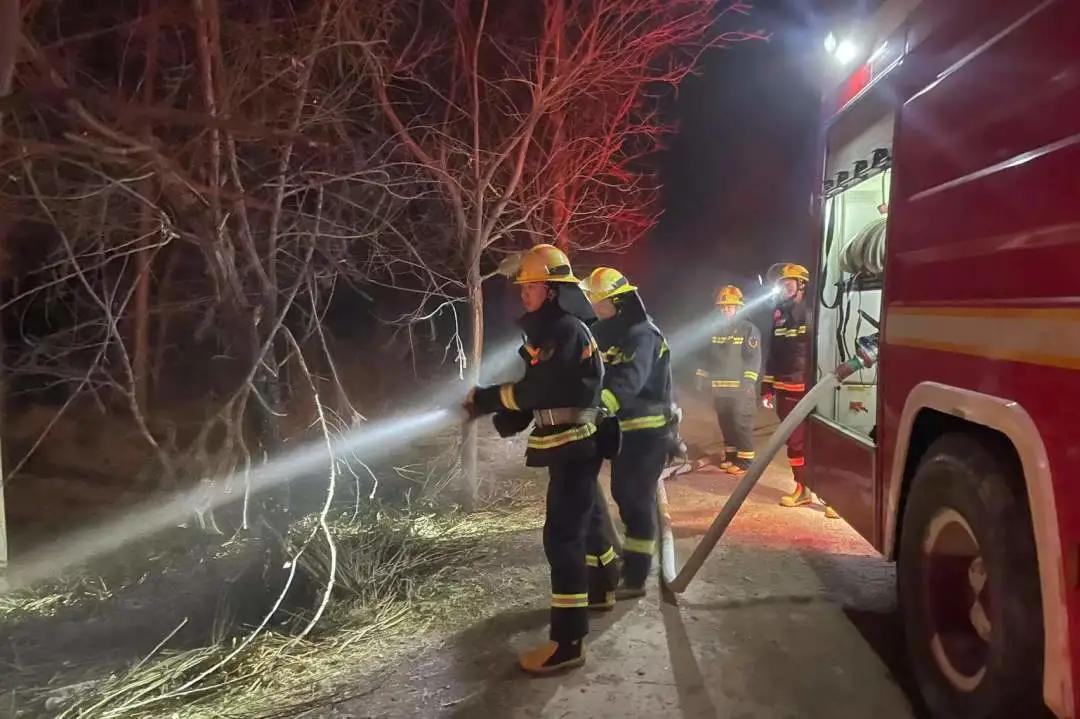 夜间芝麻杆堆垛起火急救