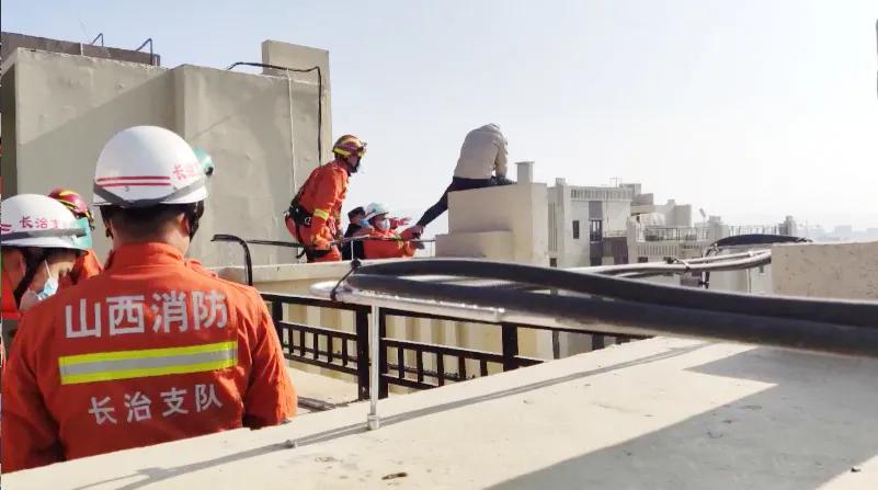 近日,长治一名男子坐在34层高楼顶部边缘欲跳楼轻生。接到报警后,五马消防救援大队立即出动两车12人赶赴现场。