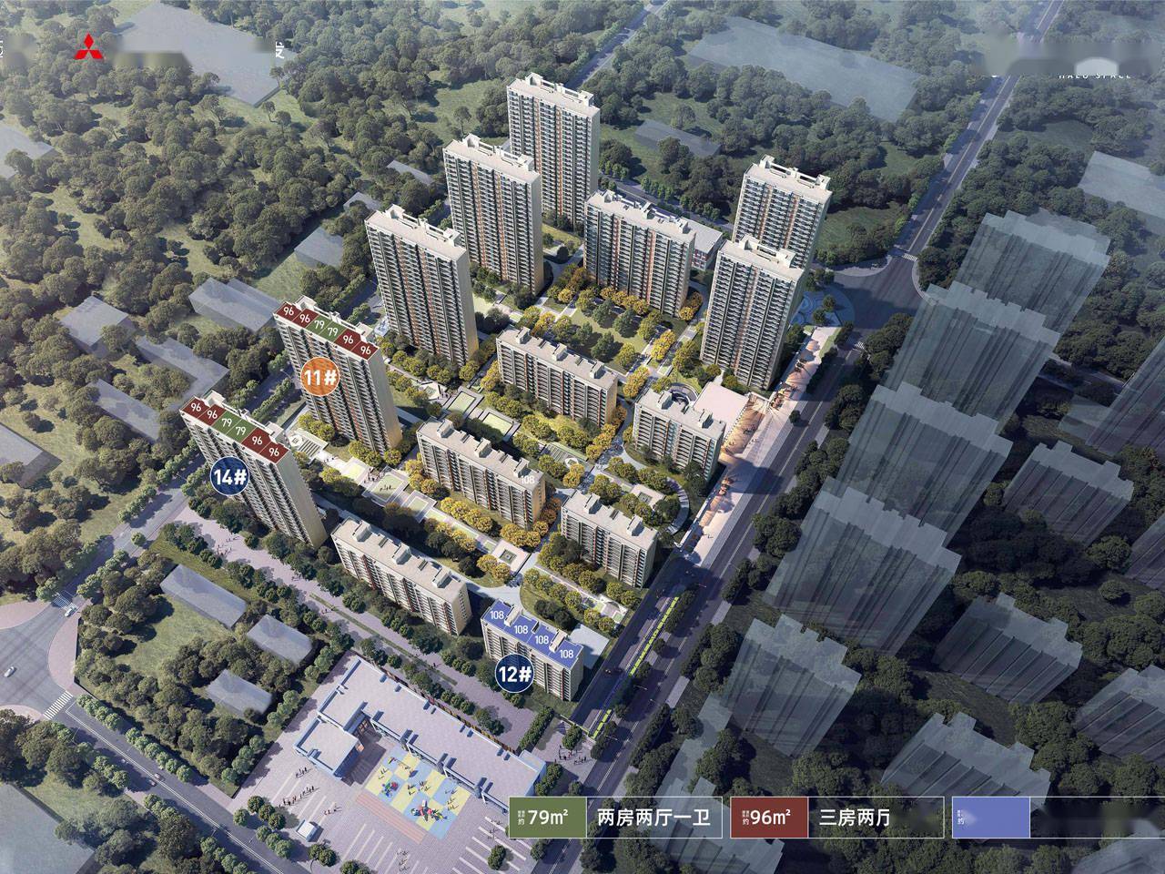 项目共包含14栋住宅楼,其中24-26层7栋、18层1栋、10-11层6栋,并规划有1栋5层商业楼和一所12班的3层幼儿园。户型涵盖79㎡2室2厅1卫、96㎡的3室2厅1卫以及105㎡3室2厅2卫,装修交付。