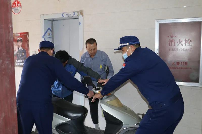 活动中,大队执法人员先后查看了小区楼道、消防通道及公共区域是否存在占用消防通道、楼道消防通道电动车乱停乱放和违规充电情况。同时,对停放在疏散通道、安全出口、楼梯间等场所的电动自行车及时清理,并及时制止了电动自行车飞线充电行为,将电动自行车安全隐患消除在萌芽之中,切实保证住宅环境的整体安全。