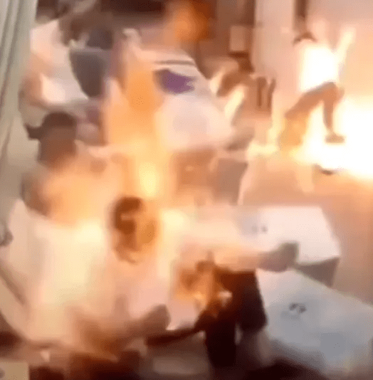 5月7日,江苏徐州某足浴店内一名女店员在往容器里倒酒精时,酒精壶突然爆燃,火团迅速蔓延至女店员和其他多名客人身上,大家身带火苗尖叫着跑出店外。从监控视频中可以看到,女店员操作时明显已有明火,但其仍继续往容器内倾倒酒精。所幸店员和客人均无大碍。