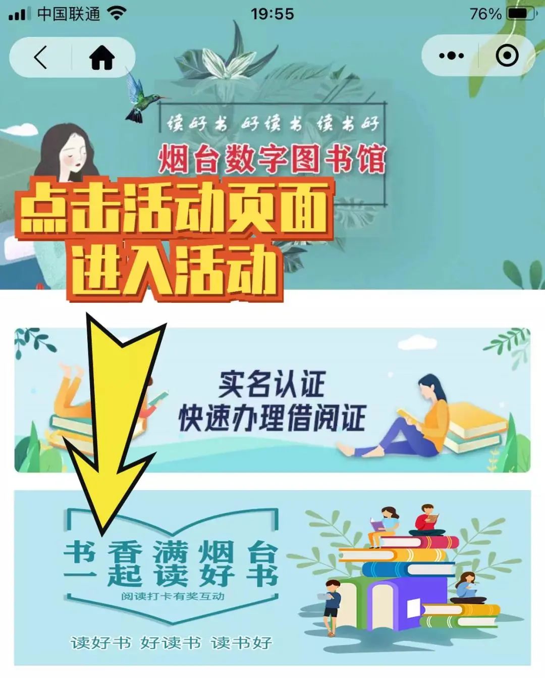 ②进入全民阅读平台后,点击“书香满烟台,一起读好书”页面进入活动(如图所示)。